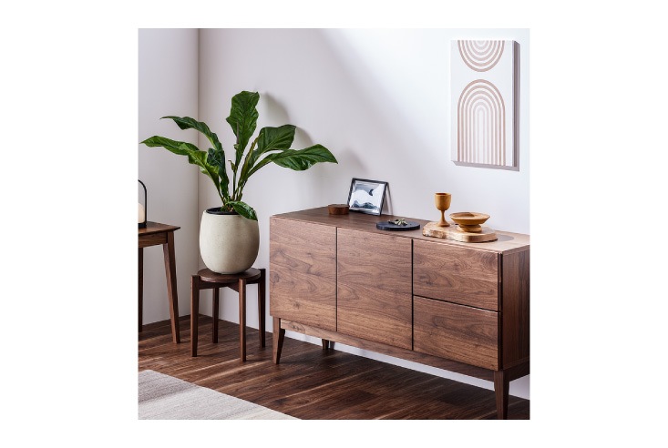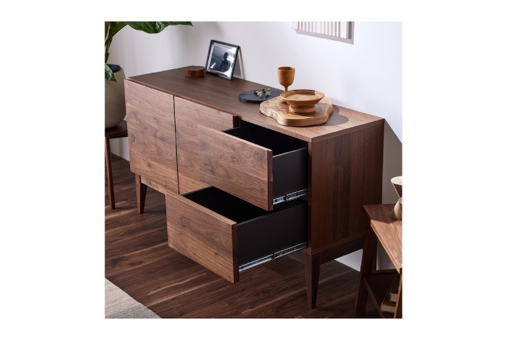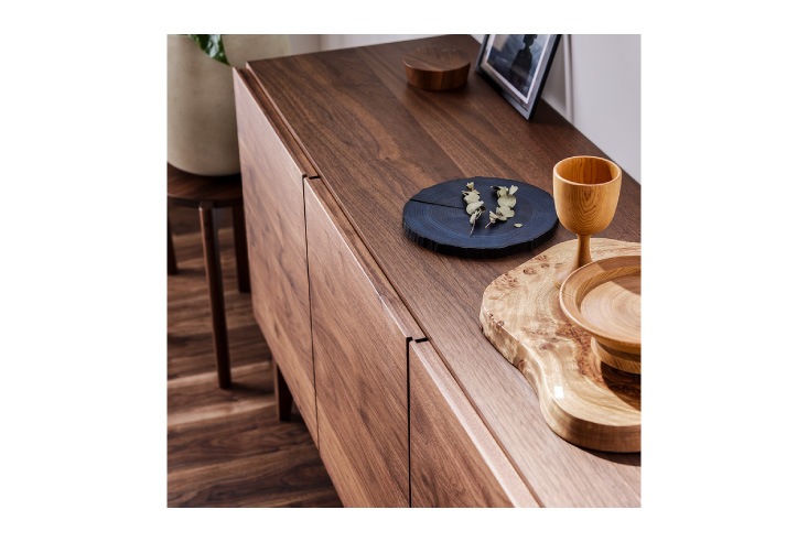 Calleシリーズのサイドボードは木が持つ本来の木目の美しさを最大限表現するためのシンプルなデザインになっています。形はどこにでもあるようなサイドボードですが、全く同じ木目は存在せず、人間のように一つ一つが違う個性を持っています。