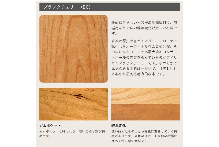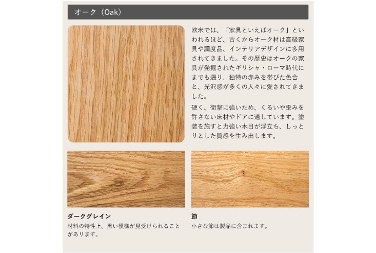 | 材質 | 戸板・前板・脚:無垢材 外装:突板 内装:プリント合板 |