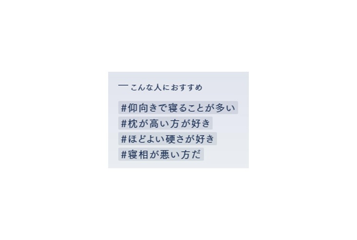 ※仰向きで寝ることが多い・枕が高い方が好き・ほどよい硬さが好き・寝相が悪い方だ