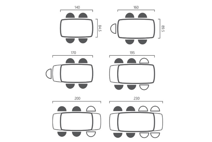 W1400-1700-2000 D845 H720mm W1600-1950-2300 D895 H720mm |