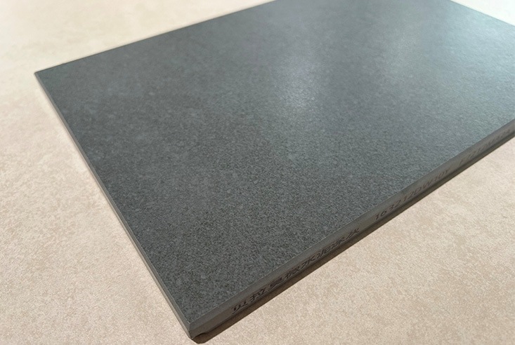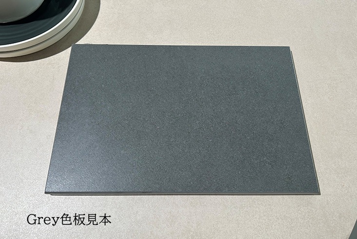 インテリア素材として最近注目されているシントストーン ( 焼結石 ) を天板に使ったラウンドテーブル。セラミックの一種で、天然石を特殊な工程を経てプレスし、高温で焼成加工したものです。硬く丈夫な素材で、水に強く耐久性に優れています。