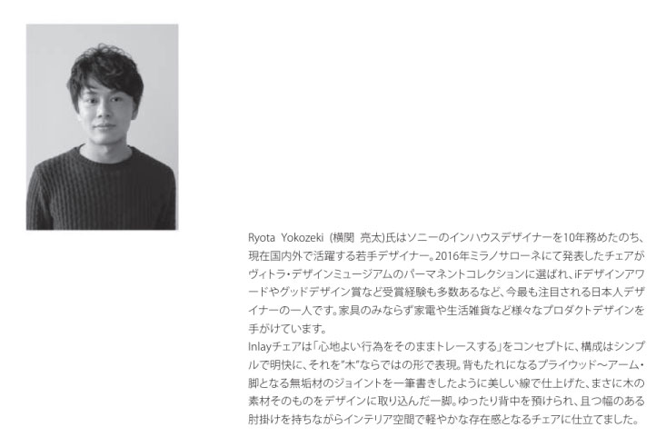 アームと背もたれ、それぞれのカーブがシームレスに組み合わされた美しいラインが特徴。コンパクトながら背と座の絶妙な曲面により抜群の座り心地です。ダイニングの他、ワークチェアとしてもおすすめです。 - Design by Ryota Yokozeki