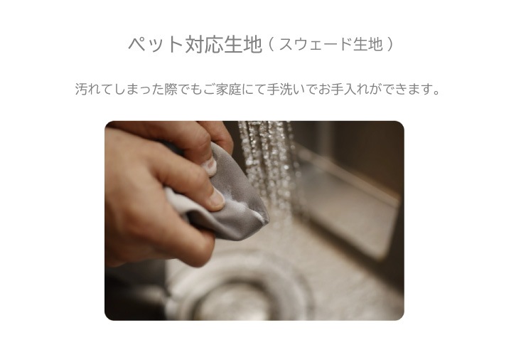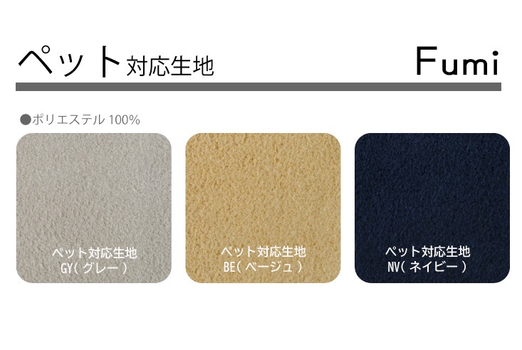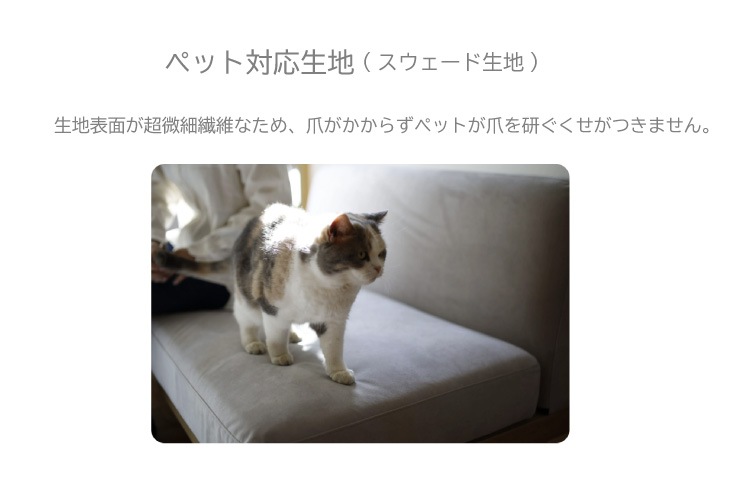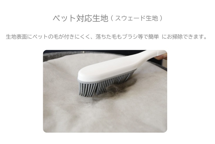 またこちらの商品はペット対応生地となっており、一般的な生地と異なり超微細繊維を組み合わせ起毛した生地で、ペットの爪が引っ掛かりにくく、爪で生地を破りにくい構造となっています。微細な繊維起毛の為、手触りも柔らかく心地よい質感の生地です。