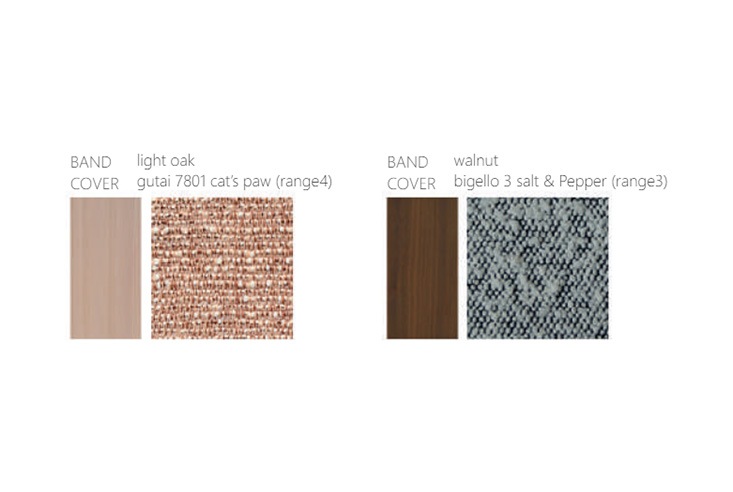 | 材質・塗装 | FRAME:MDF・パイン無垢材・オーク無垢材・プライウッド FILLING:高密度ウレタンフォーム BAND:wood オーク無垢材 PU塗装 (light oak / walnut) COVER:FIX |