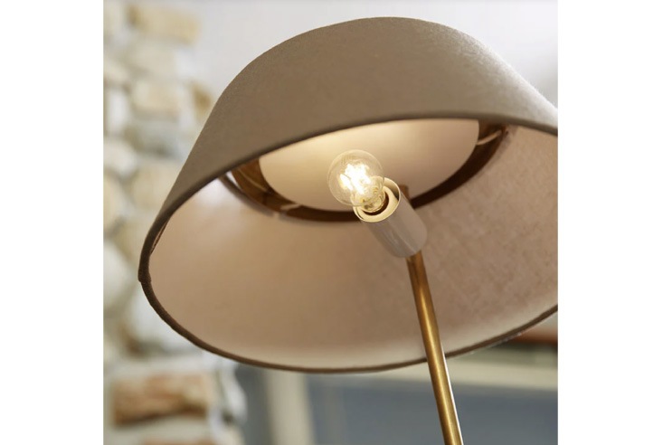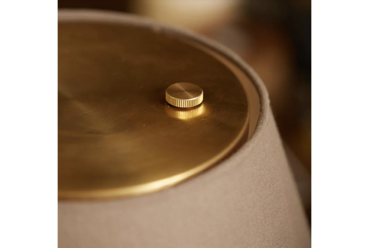 ファブリック×真鍮×大理石の3つの素材を絶妙の配分で組み合わせ、上質な雰囲気を存分に味わっていただけるテーブルランプ「Espit」。