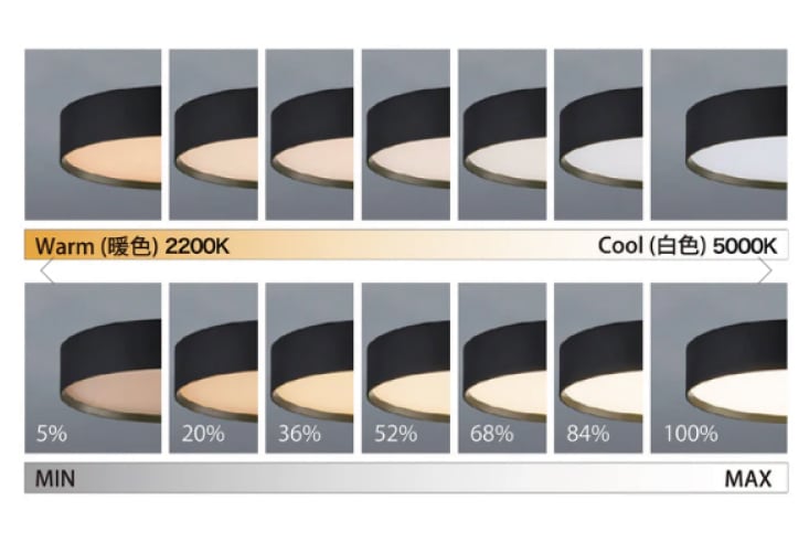 | 調色機能 | 2200K(暖色)~5000K(白色) ※warm~cool無段階調色 |