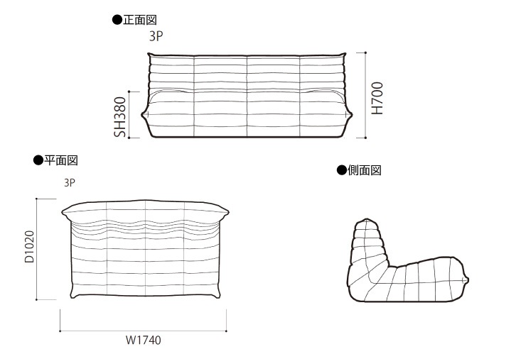 リビングソファ 三人掛け ligne roset(リーン・ロゼ) ROSETTogo(ロゼトーゴ) 3P 皮革Eランク
