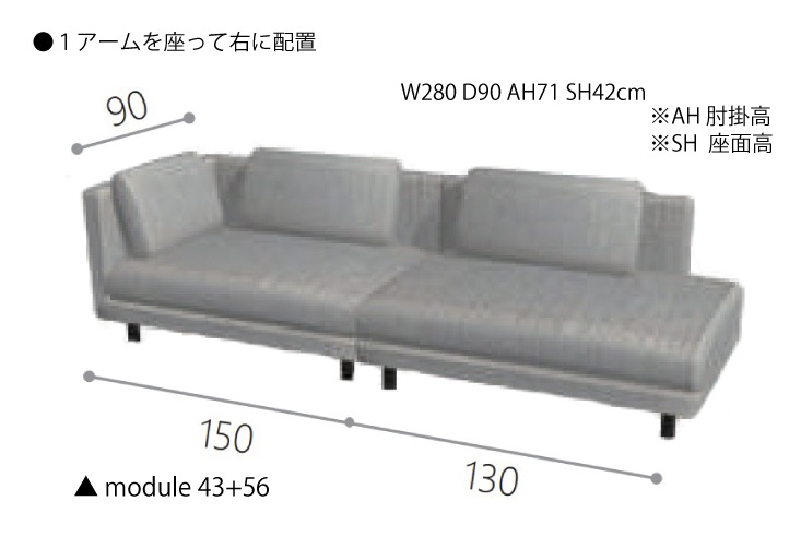 ソファ moda en casa/モーダエンカーサ/Sketch SEQUEL Sofa セクウェルソファ 1アーム 150 + オープンエンド 130