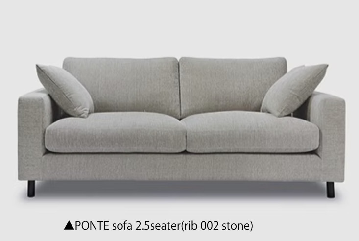 スタンダードでありながらモダンなデザインのPONTEソファ。日本人の好みに合うシートの硬さバランスを吟味、日本の住環境に合いやすいサイズバリエーションを用意しました。