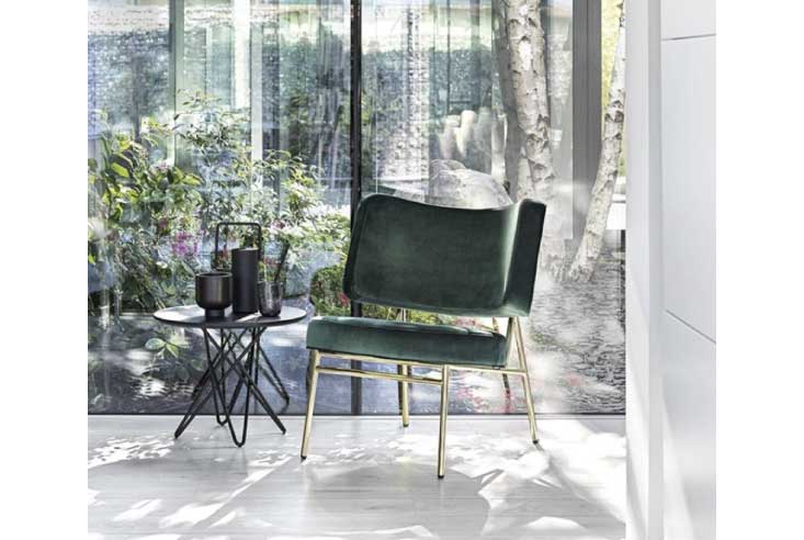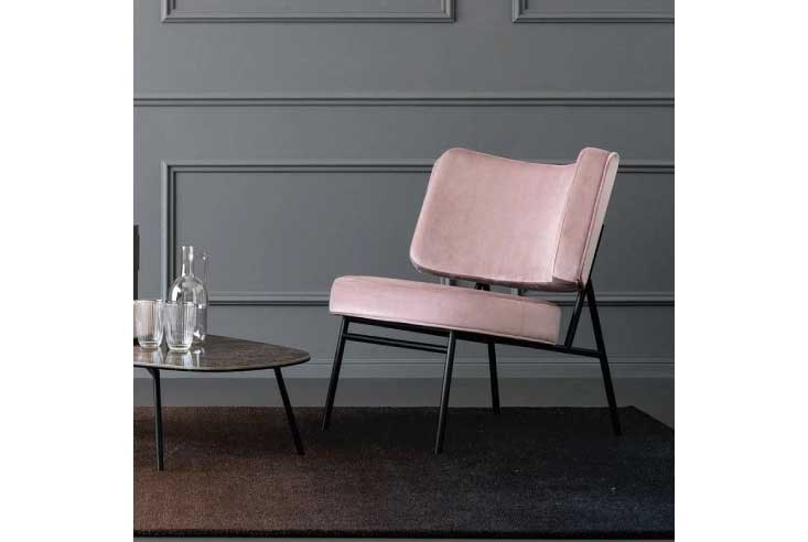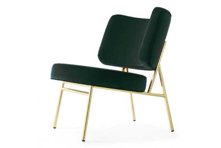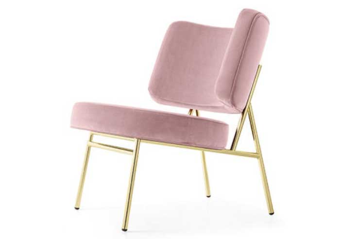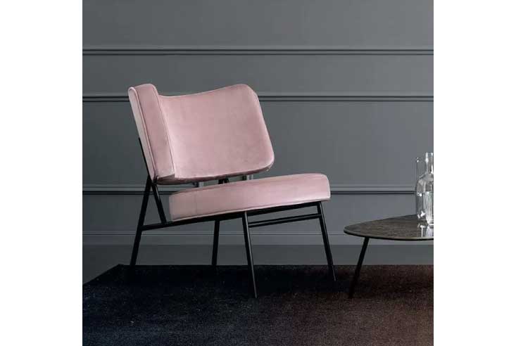 ココ(Coco)チェアは1950年代のフォルムを持つラウンジチェアです。丸みを帯びた背もたれと座面が特徴的で、モダンな印象を与えます。細身のメタルフレームとたっぷりしたパッドのコントラストが、シンプルでラグジュアリーな雰囲気を演出しています。