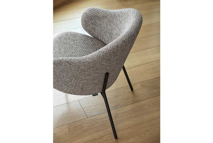 ホリーチェアーは、洗練されたフォルムと柔らかなラインが特徴で、どんなインテリアにも馴染みやすいデザインです。背もたれやシート部分にわずかなカーブがあるフォルムとクッション性の高いシートが、座り心地の良さを実現しています。