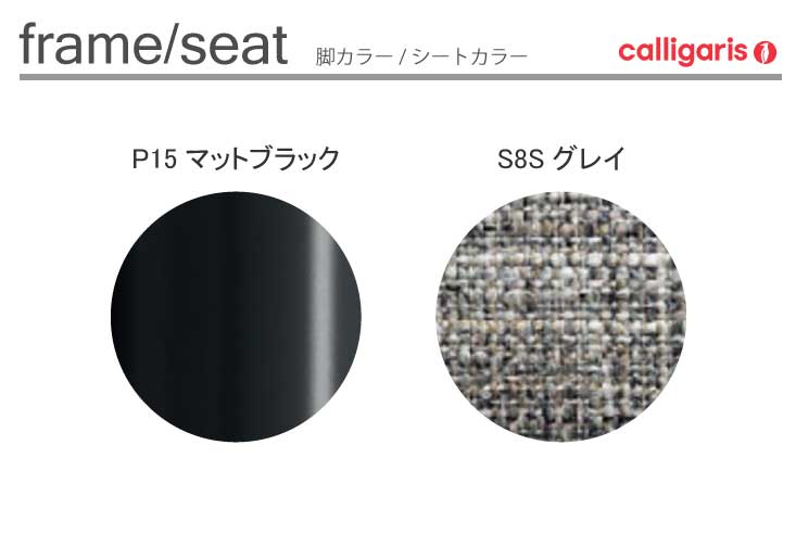 | 材質 | 脚部:メタル(P15・マットブラック) シート:ファブリック (S8S・グレイ / アクリル54% ポリエステル46%) |