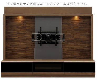 テレビ壁面に採用した凹凸のあるデザインパネルに、 LEDダウンライトの優しい光を照らすことでぬくもりのある落ち着いたリビングを演出します。 壁掛けムービングアームはオプションとなります。 ムービングアーム非対応のテレビもございます。ご確認のほどお願い致します。 テレビ背面ネジ穴位置・・・幅200mm~600mm 高さ200mm~400? 背面フラット(凸20?まで可) 50kg以下