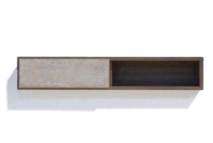 そしてちょっと小ぶりなこのウォールボックスは、殺風景な壁面をおしゃれに演出してくれます。単独使いはもちろんのこと、ウォールナットの深い色味と、長い年月をかけてできた天然石の模様のコントラストが、より重厚で高級感ある空間デザインを実現してくれます。