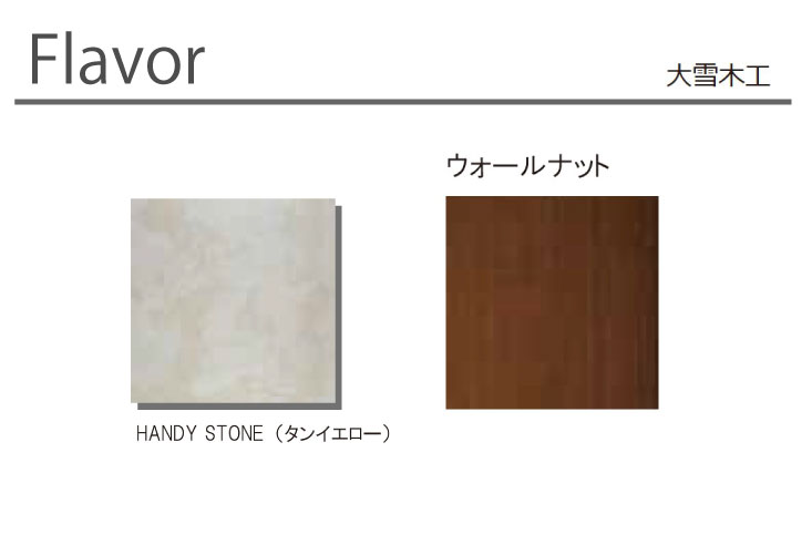 天然石の印象的な模様とマットな質感の面材と、ウォールナットの独特な色合いのバランスを持つ、Flavor(フレイバー)シリーズの扉材は、重厚で高級感のある空間デザインを可能にします。
