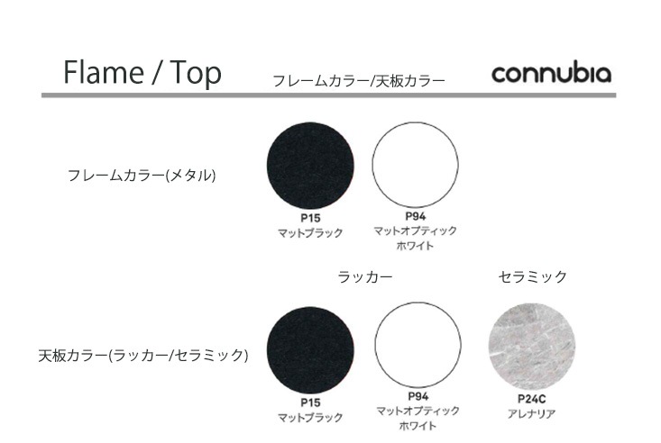 天板/フレーム: P15マットブラック/P15マットブラック、P94マットオプティックホワイト/P94マットオプティックホワイト |