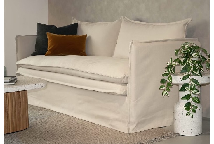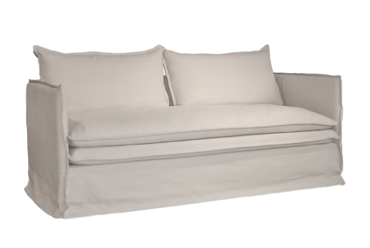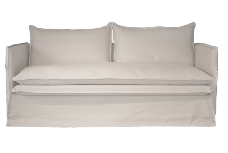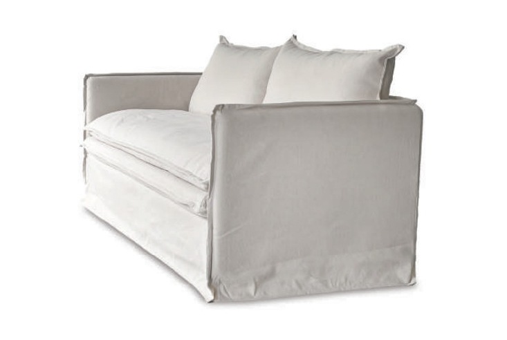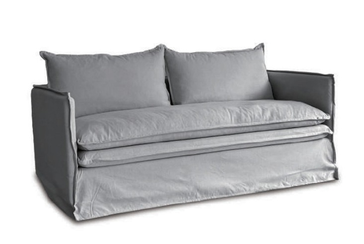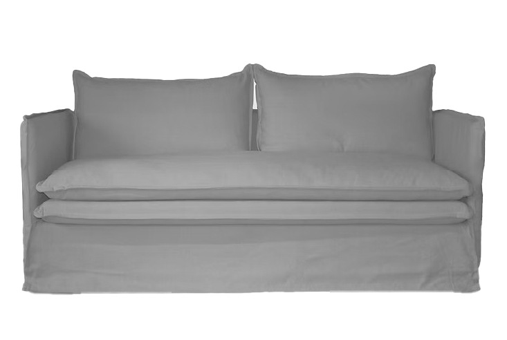 細身のフレームにルーススタイルのフルカバーリングソファ。クッション中材にはフェザーをたっぷりと使い、包みこまれるようなふわふわな座り心地が特徴です。