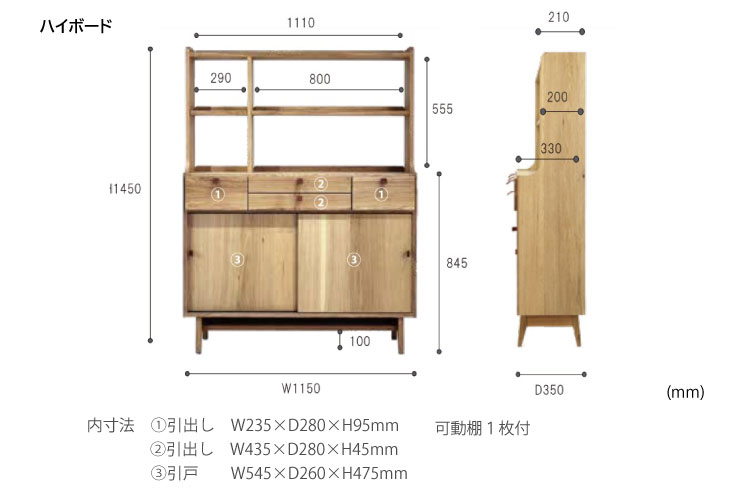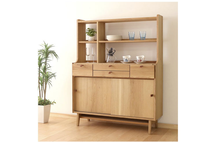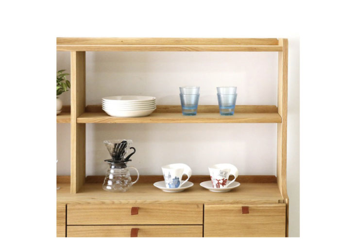 すぐ手にとって使えるようにしたい物、見えないように仕舞っておきたい物、オシャレにディスプレイして置きたい物などを、引出・引戸・オープン棚とそれぞれの収納方法が1つになった抜群の収納力と使い勝手の良さを兼ね備えたハイボードです。背面までしっかりと仕上がっているので間仕切りとしてもお使いいただけます。