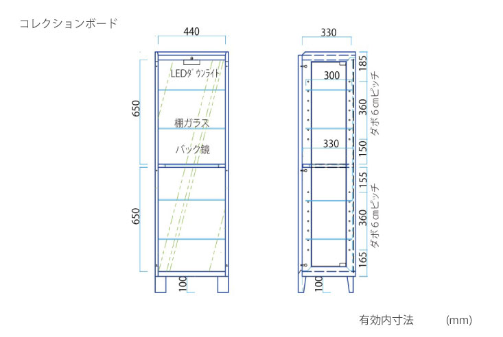 左右開閉となっているので、前面に遮るものがなく、お気に入りのコレクションを美しく魅せ、我が家に小さな美術館が出来上がります。