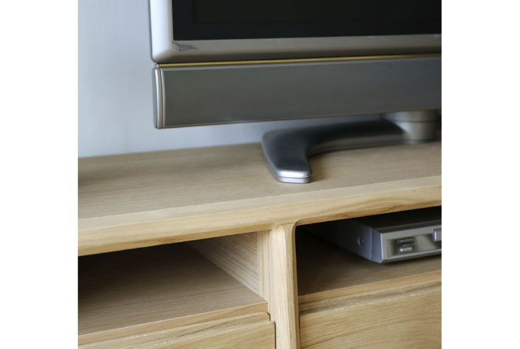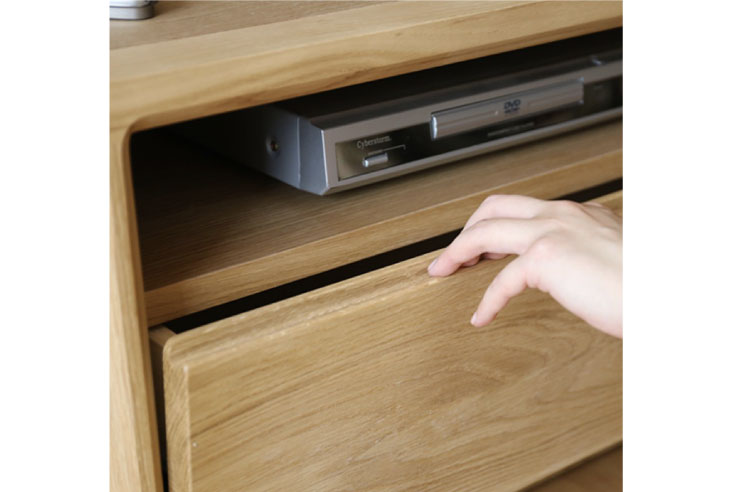 大型テレビも安心して置ける、広い天板が魅力のテレビボード。無機質なテレビなどの機器もこのテレビボードに設置すれば、温かい雰囲気に変わります。