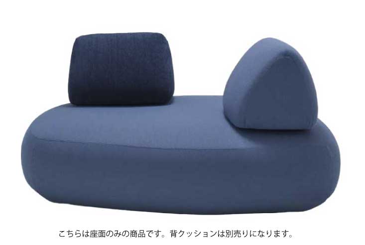 本体、背クッションのそれぞれの角の角度は異なり、アシンメトリックなデザインになります。背クッションの底面には滑り止め用のシートが張られています。床でご使用の場合、床暖房やホットカーペットに対応はできますが長時間あるいは強い熱により、劣化するおそれがありますので、床暖房等の温度は30℃以内でご使用ください。