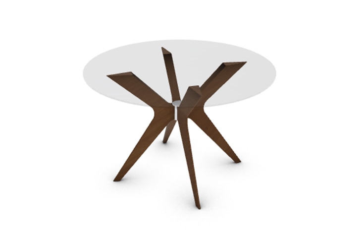 トーキョー・テーブルは、堅牢な無垢材のベースと、透明ガラスまたはセラミック製の天板が完璧なハーモニーを奏でます。長方形バージョンでは、交差した脚と中央の継ぎ目により、ベースは特徴的なX字型をしています。丸形バージョンでもそのフォルムは確認でき、よりコンパクトな印象になります。カリガリスジャパンでは天板・ベース共に日本限定カラーを数量限定でご用意しています。