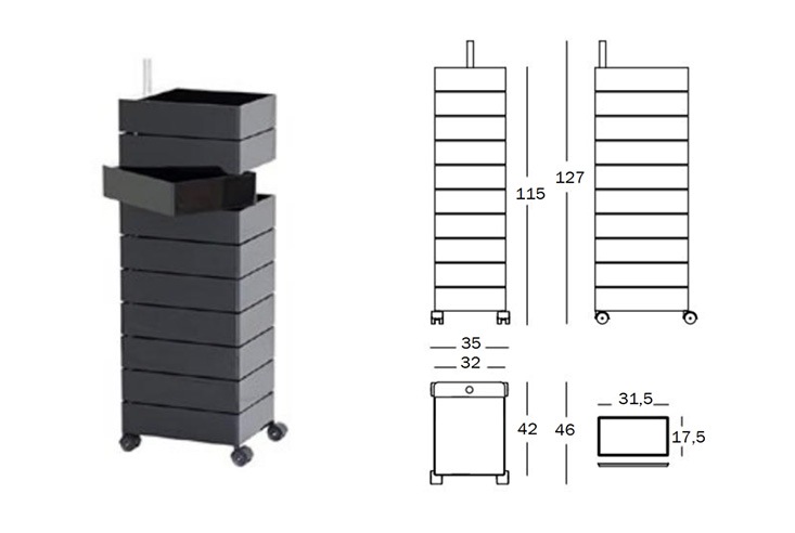 360°CONTAINER: 10段 W350xD460xH1270mm 5段 W350xD460xH720mm |