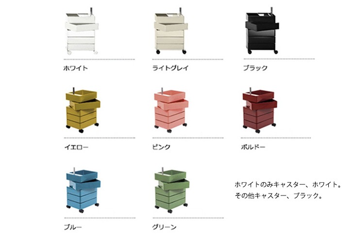 本体:ホワイト、ライトグレイ、ブラック、ピンク、イエロー、ブルー、ボルドー、グリーン キャスター:ブラック(本体ホワイトのみホワイト) |