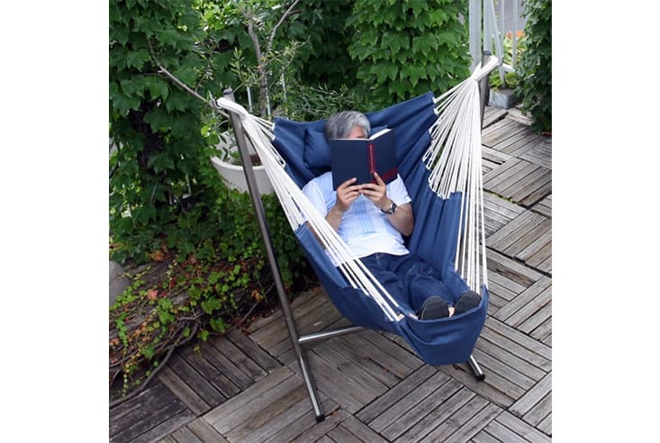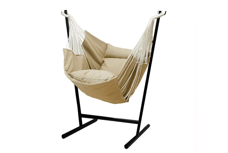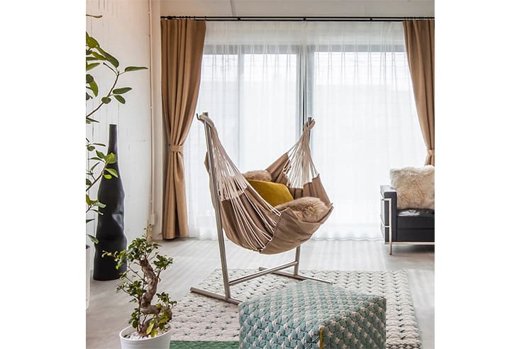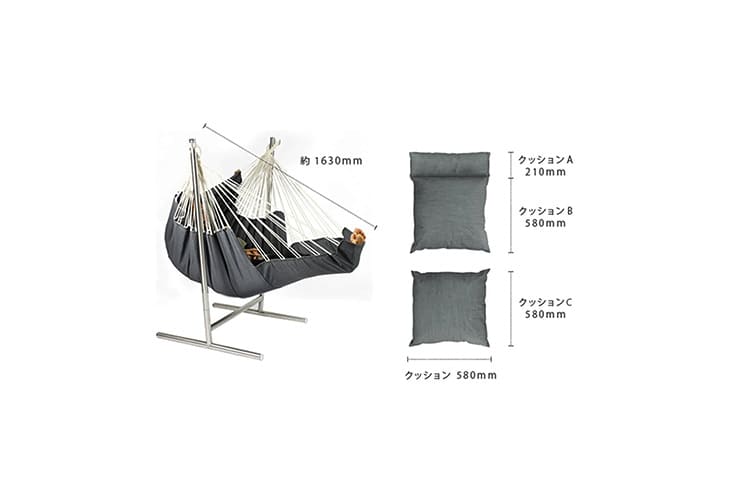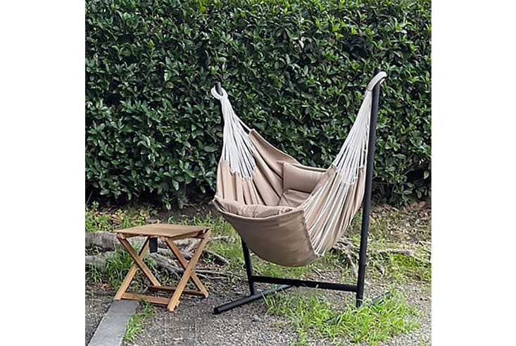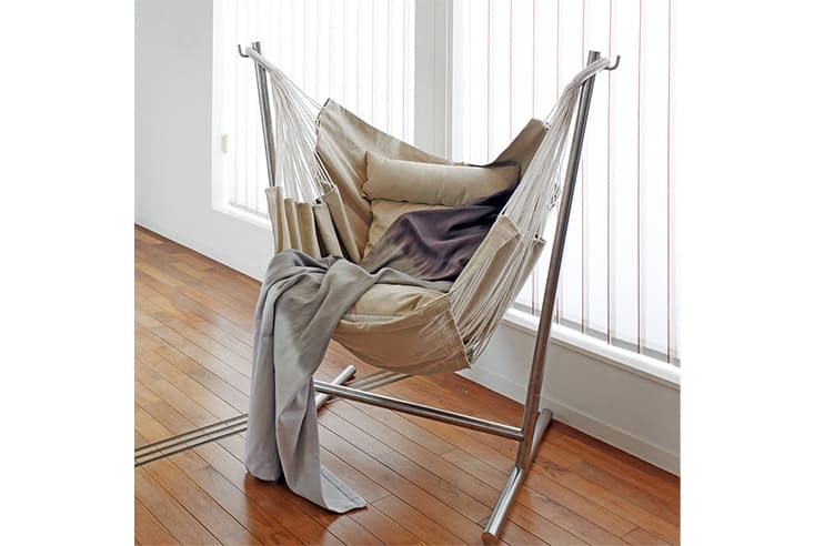 ご家庭で1人になる時間・空間が欲しい!という方におすすめ。しっかりと体全体が支えられ、付属するクッションによって柔らかでラグジュアリーにお寛ぎいただけます。一般的なハンモックとは異なり、座りながらテレビを楽しむことができます。持ち運びも簡単でキャンプなどシーンにも活躍します。シエスタで有名なスペインならではの発想を生かした1人掛けハンモックです。