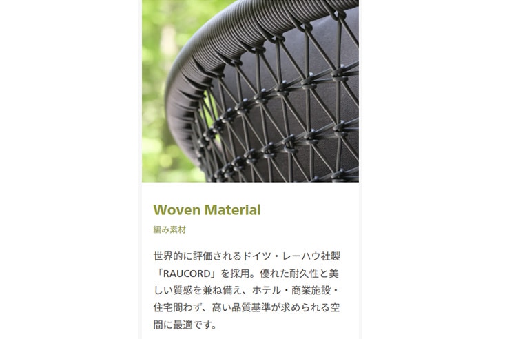 ドイツの【REHAU(レーハウ)社】が企画、自社工場にて製造した「RAUCORD」と呼ばれるHDPE(高密度ポリエチレン)は耐久性に優れ色あせにも非常に強い素材です。