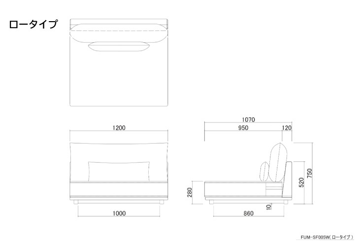 | サイズ | W1200×D1060高さ850mm(ロータイプ時750) 座面高:380mm(ロータイプ時280) 背クッション大W1200×D200高さ500mm 背クッション小W750×D150高さ250mm |