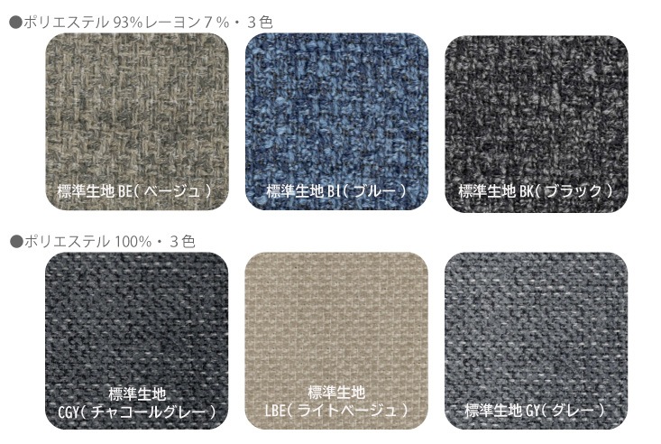 | 材質 | BE(ベージュ):ポリエステル93%レーヨン7%BL(ブルー):ポリエステル93%レーヨン7%BK(ブラック):ポリエステル93%レーヨン7%