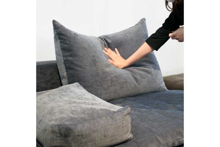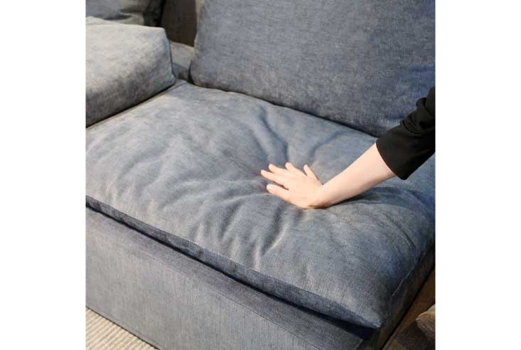 ゆったりとした奥行きのある座面は日本の伝統と精神が受け継がれているこだわりの布団仕様。まるで最高級のベッドがそのままスタイリッシュなソファになったかのようです。耐久性とクッション性に優れた、現在国内でも希少なコイルスプリングクッションの技術を持った地元メーカーの職人によって、手作業で作られています。天然素材をふんだんに用い、妥協の無い匠の技術とリアルスタイルのデザインとで作られたソファは“Made in Japan”の粋を結集したソファです。本体もカーバーを取り外す事ができる為、布団、クッション全てドライクリーニングが可能となっています。