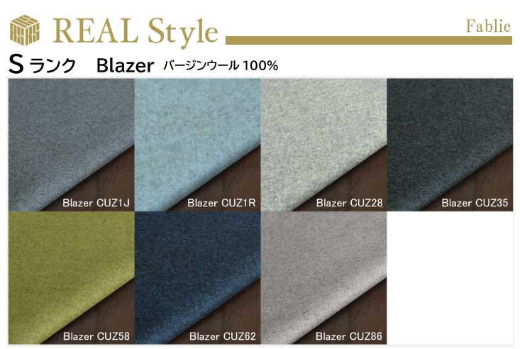 備考 | カバーリングタイプ 布団×1 背クッション×1 Maple エアロ仕上げによる極めてソフトな手触りのMaple はトーン・イン・トーンの3色の糸で作られています。ビスコースを構造に使用することで生まれる独特の光沢が光の具合や見る人の角度によって深みを増します。Mapleは平織で微妙な縞模様が特徴です。シェニール糸を使用し、織りの構造が見て取れるソフトなパイルです。テキスタイルの表面に現れる繊維や小さな糸は、のどかな表情を一層引き立てます。 Blazer Blazerは、ピュアニューウール100%で作られた肌触りのスムーズなフェルト生地です。生地の製作に適した、柔らかく、美しい最高品質のウールが環境に配慮された農場で生産される、ニュージーランドのプレミアムラムウールから作られています。無地とメランジのカラーが有り、様々なソファやチェア、インテリアデザインに合わせられます。 |