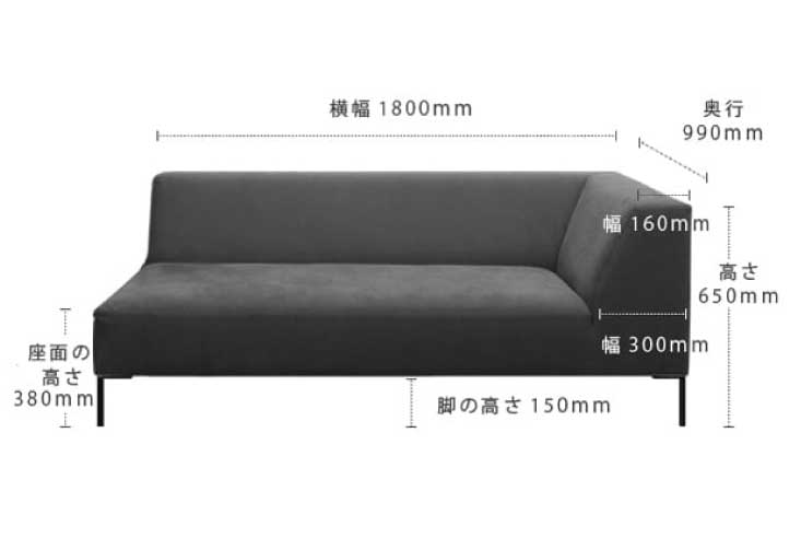 | サイズ | W1800×D990×H650mm 座面高:380mm 脚:直径20×150mm |
