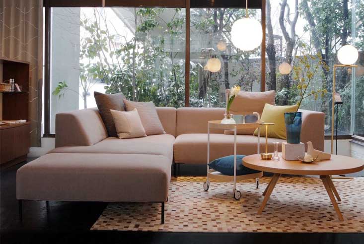 両肘タイプからカウチ、片肘、スツールまで展開があり、L字の形にしたり、空間、用途にあわせてレイアウトいただけけます。