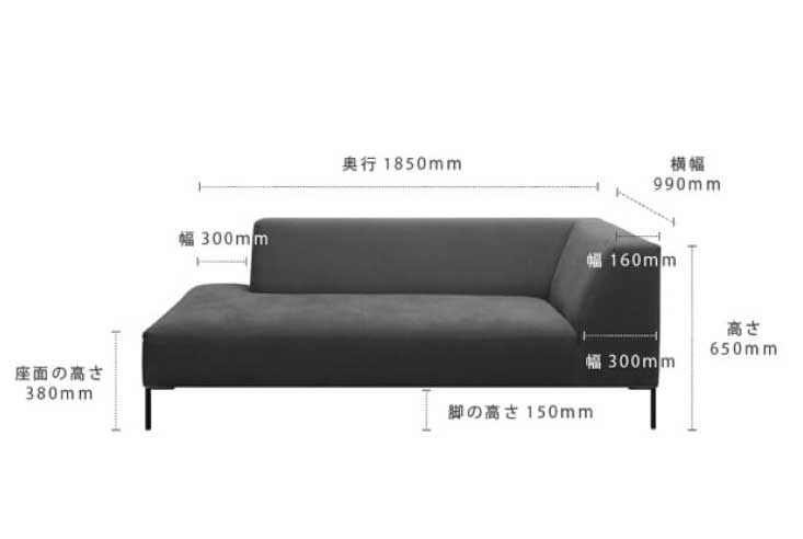 | サイズ | W990×D1850×H650mm 座面高:380mm 脚:直径20×150mm |