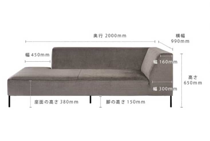 | サイズ | W990×D2000×H650mm 座面高:380mm 脚:直径20×150mm |