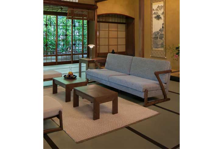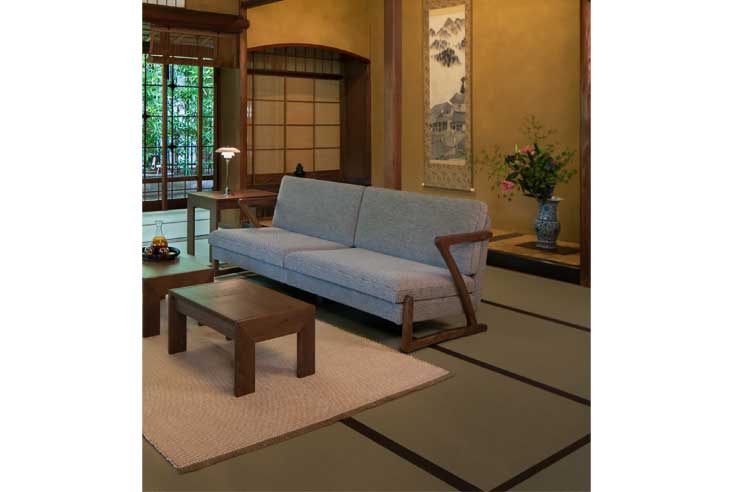 奥行の深い座面でゆったりとくつろげるロータイプソファ。ローチェアやオットマン、サイドテーブルと組み合わせてご使用になれます。また高級旅館や料亭でのご利用も想定し、背裏側の手掛けやフルカバーリング仕様など、メンテナンスがしやすい機能性も完備。木部はすべて丸く丁寧に角がソギ落とされているため、人当たりに優しく、手触りもしなやか。長期に渡ってご愛用いただけるソファです。