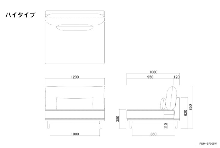 | サイズ | W1200×D1600×H850mm(ロータイプ時750) 座面高:380mm(ロータイプ時280) 背クッション大W1200×D200×H500mm 背クッション小W600×D150×H250mm |