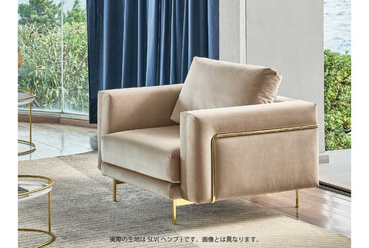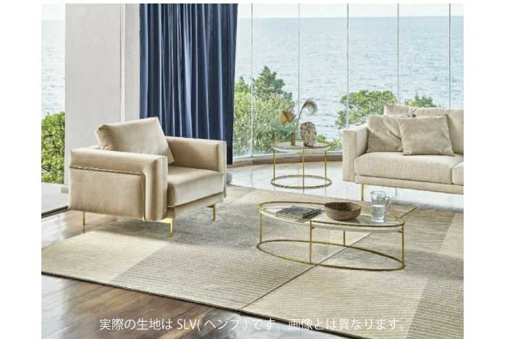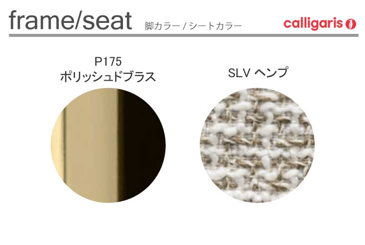 | 材質 | 脚部:メタル(P175・ポリッシュドブラス) シート:ファブリック ( SLV・ヘンプ / ポリエステル37% アクリル21% ヴィスコース19% 綿14% リネン8% ポリアミド1%) |