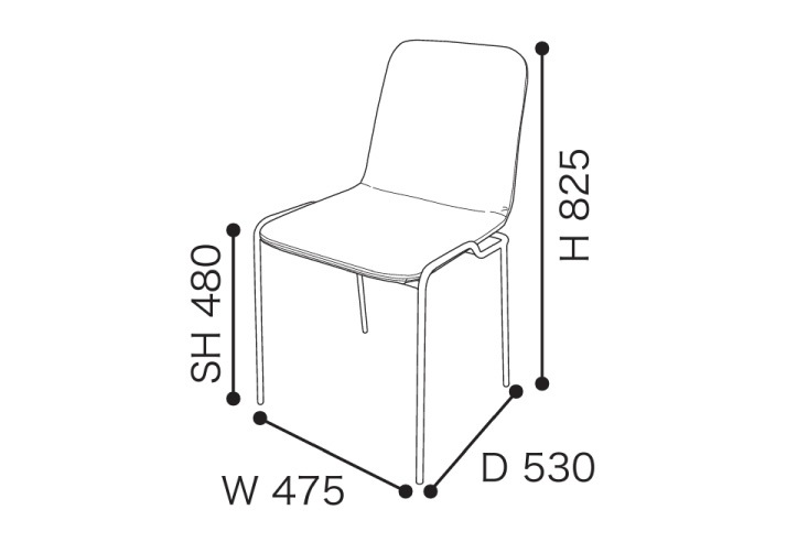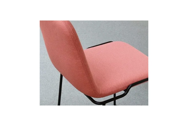 1950-1960年代のミッドセンチュリーデザインを再解釈したデザインです。ゆるやかなカーブが特徴的な本体と、細く長く伸びた脚が美しく融合し、とてもシンプルなチェアに仕上がっています。そして本体の厚みがうすく、シャープな印象です。また、その座面奥側はフレームとジョイントされず軽快に感じられるデザインですが、その構造によって背にもたれかかった時のクッション性は高く快適な座り心地になります。