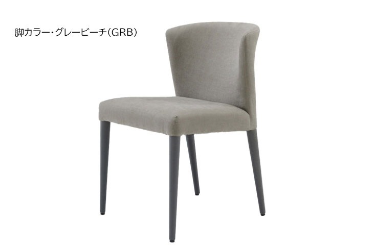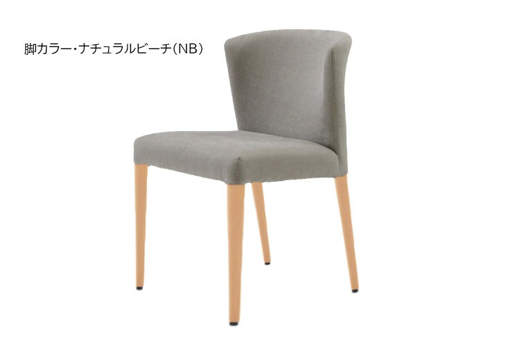 やわらかさをコンセプトにデザインされたこのダイニングチェアは、座面のやわらかいウレタンのタッチとフィット感のある背もたれの組み合わせで、快適に長く座ることができます。本体は100色以上の生地から、そして脚はグレーとナチュラル2色の無垢ピーチ材から選べます。
