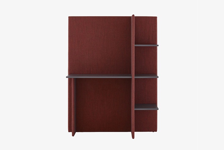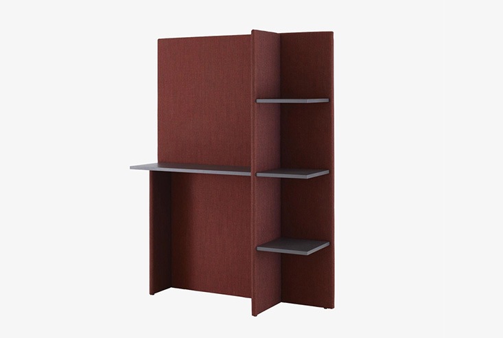 ロゼソフトウォールは、とてもおしゃれな「棚のある間仕切り」です。棚板部分の奥行きは31cmあり、ノートパソコンを置いて作業することも可能です。間仕切りとして視覚的な遮蔽と遮音を果たすだけでなく、多面的なワークステーションとしても使えます。天板や棚板の材質はブラックオーク、垂直のパネルはウレタンとファブリックでできており、幅広い選択肢の中からお選び頂けます。