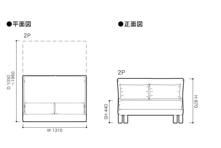| サイズ | W1310×D1030~1950×H870mm SH440mm |