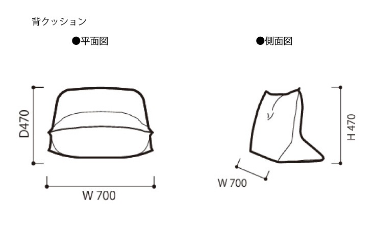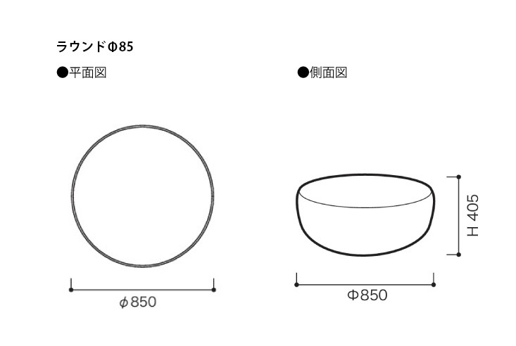 | 構造 | 脚:ブラックのスチール 本体:ウッドボディ、エラスティックベルト ウレタンフォーム、ポリエステル綿 (ラウンドΦ85はウッドボディ、ウレタン、ポリエステル綿のみ、ラウンジはエラスティックベルトの代わりにポケットコイル使用) 背クッション:フェザー、ウレタンフォーム、エラスティックベルト、スチール ボルスター:フェザー100% アームクッション:ウレタンフォーム、ポリエス綿 |