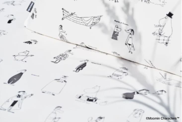 人気キャラクター「ムーミン」と、フランス発祥の「リーン・ロゼ」がコラボレーションしました。生地に描かれているのは、これまで商品で使用されることはほぼなく、大変貴重なアートになります。今回のコラボレーションに際して、ムーミンキャラクターズ社のクリエイティブディレクターが特別にアートを選定しました。コットンの上質な風合いと心地よい肌触りをお楽しみいただける、日常を彩るファブリックです。